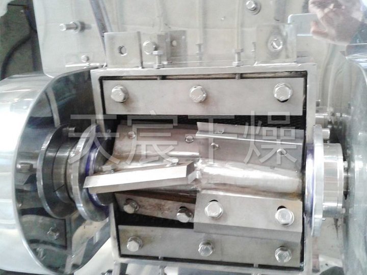 物料由進(jìn)料斗送進(jìn)粉碎室,經(jīng)刀刃和刀座的沖擊,旋轉(zhuǎn)刀和固定刀同時(shí)剪切粉碎,由于受到旋轉(zhuǎn)離心力的作用,物料自動(dòng)從出口處流出。